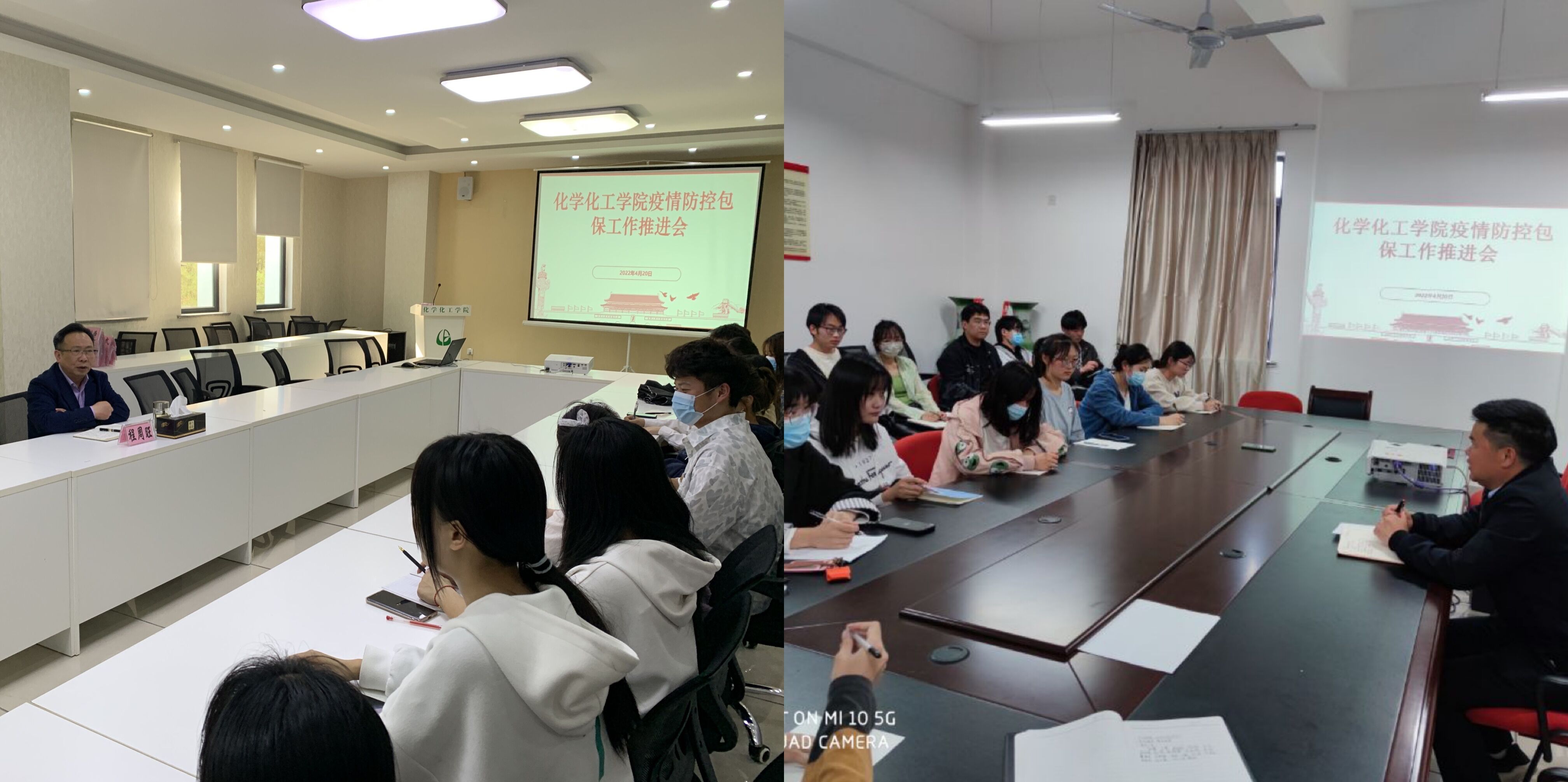 为进一步发挥全员育人作用,4月20日下午,化学化工学院分别在5316、5309会议室召开学院领导包保年级工作推进会,会上,学院领导同学生亲切交谈,深入了解学生思想动态,密切关注学生存在的重点难点,鼓励学生防疫不妨学,潜心学问,多读书、多学习,提高自身修养,为未来打下坚实基础。