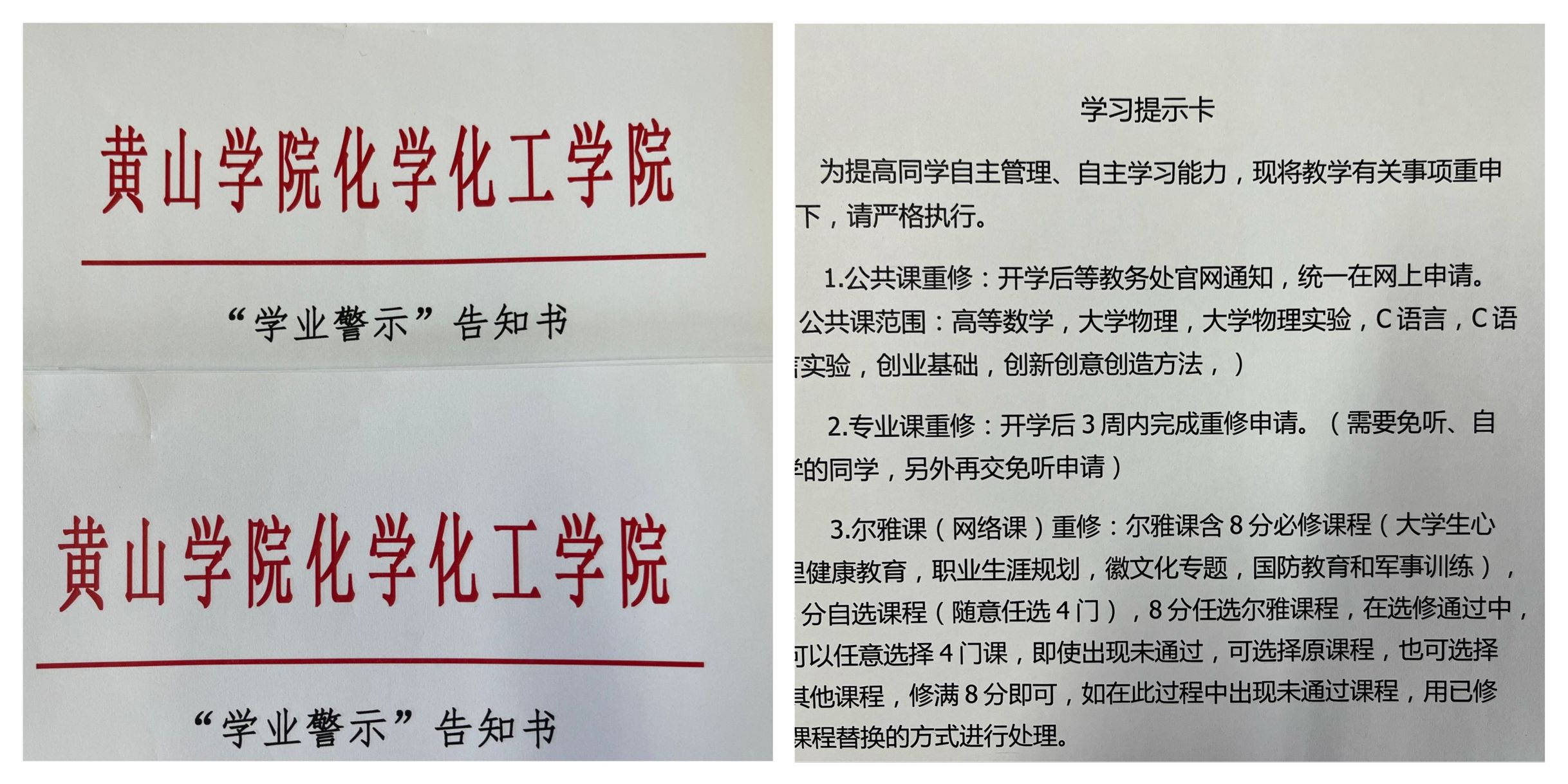 化学化工学院始终坚持“学风建设,严字当头”的理念,把握学生成长规律,规范学生学籍管理。目前,针对我院目前学风建设现状,实施学业预警制度,制定学业提示卡和学业警示告知书,对学生在校期间已经发生的学习问题和学业困难及时进行危机干预,及时召开学业警示学生座谈会,摸清学生重难点科目、薄弱环节开展全面系统的指导与帮扶。