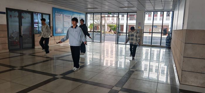 随着裁判一声哨响,跳绳比赛率先登场。1 分半钟的计时挑战中,参赛同学手握绳柄,双脚快速腾跃,跳绳在空中划出连贯弧线,现场 “哒哒” 的跳绳声与观众的加油声交织成热烈的旋律。最终,王婷婷以 326 次的优异成绩斩获第一名,何俊楠紧随其后,以 311 次获得第二名,阳超冉与张敏焓则以 298 次的相同成绩并列第三名,展现出极强的耐力与节奏感。个别同学虽中途出现绊绳失误,但迅速调整状态重新起跳,不气馁的运动精神赢得全场掌声。