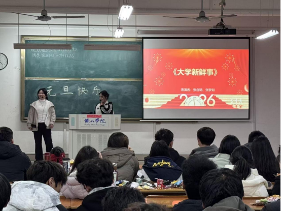 12月28日晚上,化学化工学院25功能材料班在5106教室举办以“欢度新春,金马贺岁”为主题的元旦晚会。本次晚会由辅导员田子豪牵头组织,团委老师陈伟龙、教研室主任黄飞、班主任高超与王瑞老师等受邀出席,25功能材料班全体同学齐聚一堂,其他年级学生也到场助力,晚会由张小颖、张含珺主持。