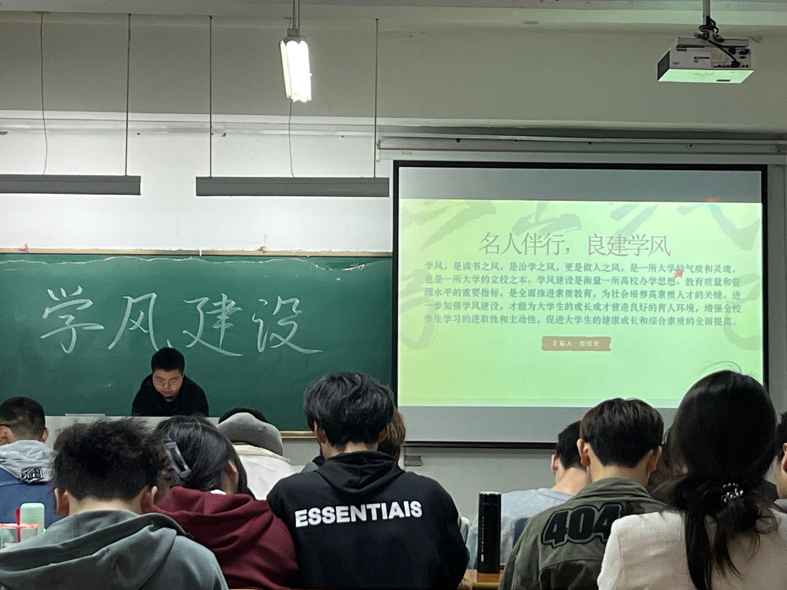慎思笃行树学风,好学力行造良才。辅导员强调一要明目标,促养成,认识学风建设的重要性;二要细落实,严要求,促进优良学风建设。活动现场,班级共有十位同学分享了名人事迹,从优良品德、学习方法等方面进行分享,鼓励向榜样学习,做学风建设的实践者、宣传者、监督者。