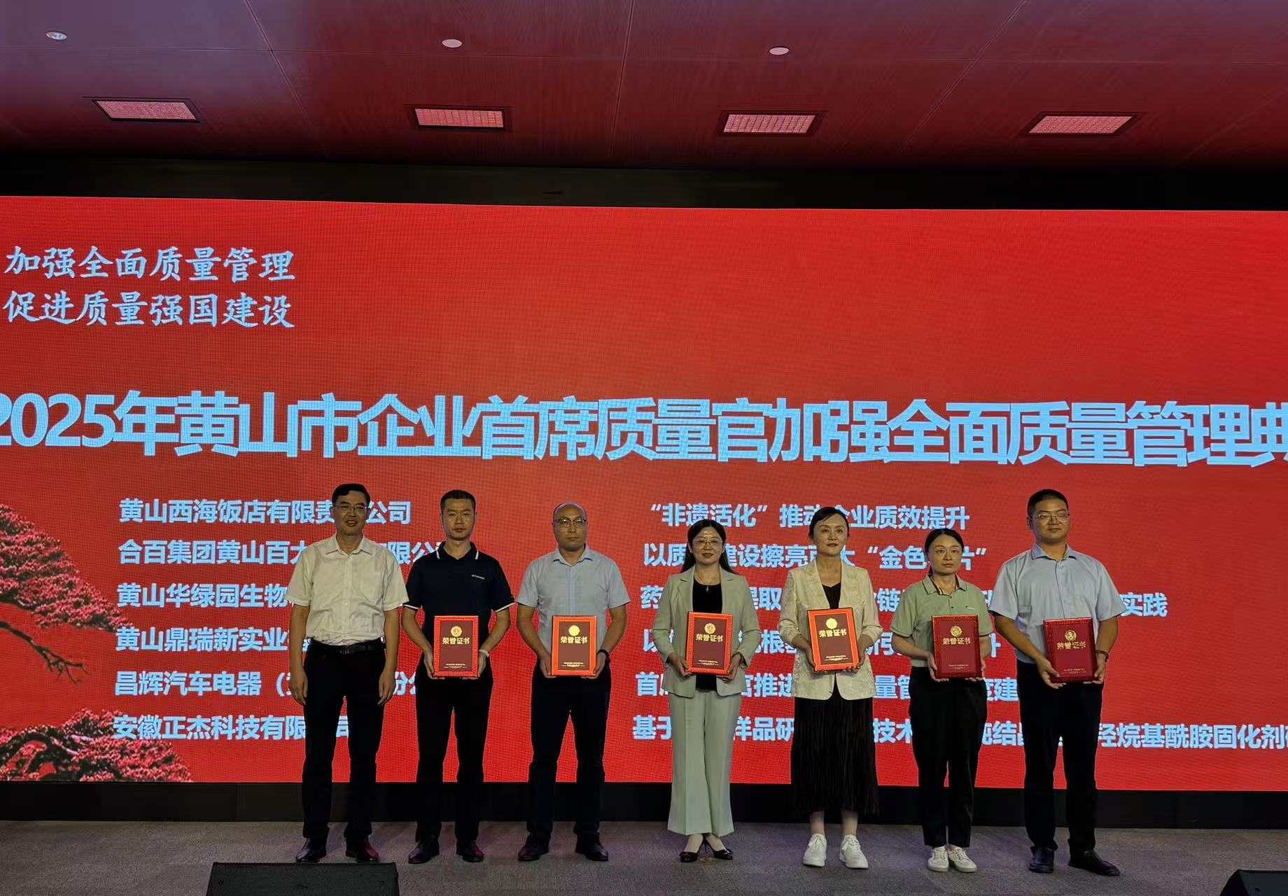 9月4日,2025年黄山市“质量月”活动启动仪式暨质量强企强链强县(区)经验交流会在黄山小罐茶业有限公司一楼报告厅举行。会上宣读了《黄山市市场监管局关于发布2025年质量赋能新质生产力优秀成果的通知》,化学化工学院派出的挂职科技副总、安徽正杰科技有限公司首席质量官孙光映博士报送的《基于标准样品研制应用技术的超纯结晶型β-羟烷基酰胺固化剂研发案例》入选2025年黄山市企业首席质量官加强全面质量管理典型案例。