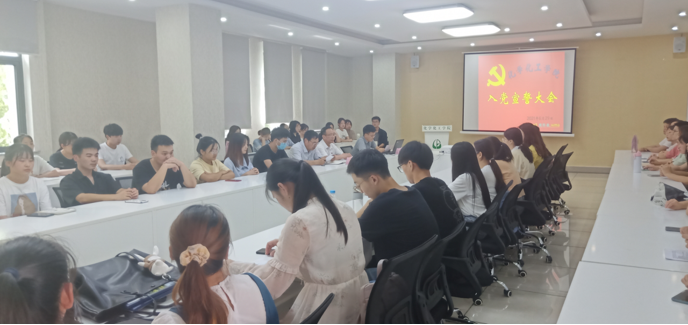 6月29日,在中国共产党百年华诞即将到来之际,化学化工学院党委在逸夫综合楼5316会议室举行新党员宣誓大会暨“书记上党课”活动。学院党委书记程周旺、副书记叶双峰、各党支部书记及全体新发展党员参加会议,会议由第五党支部书记孙银宇主持。