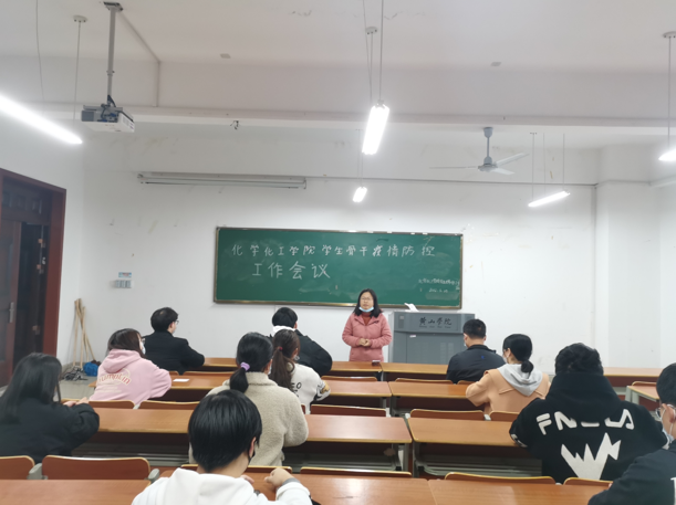 为进一步强化疫情防控期间的学生管理工作,营造良好防控环境,3月25日,化工院学生会联合易班在逸夫综合楼5208教室召开学生干部疫情防控工作会议。学生会部分成员、易班各班班长参加会议,会议由院团委书记郑春梅主持。