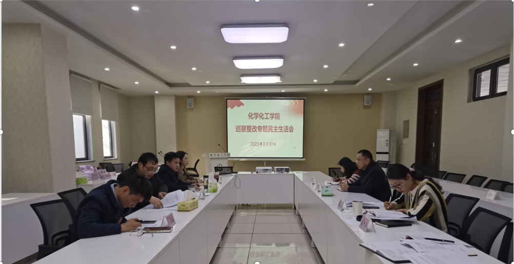 3月10日下午,化学化工学院召开巡察整改专题民主生活会。班子成员、党委委员和支部书记参加会议,会议由党委书记叶双峰主持。