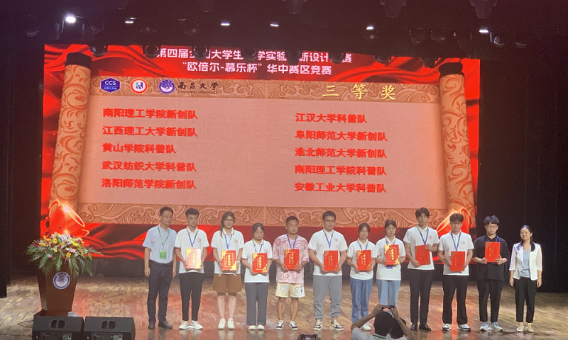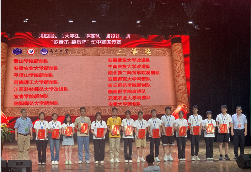 7月20日至22日,由中国化学会、教育部高等学校国家级实验教学示范中心联席会主办,南昌大学化学化工学院承办的第四届全国大学生化学实验创新设计大赛“欧倍尔-慕乐杯”华中赛区竞赛在南昌大学成功举办。通过初赛网络评审,我院三支队伍分别参加新创、改进和科普赛道,并全部入围决赛。20日复赛作品评审和21日-22日两轮激烈的答辩,我院选手叶沁淇、祝若男、闫兴照获得改进组二等奖,钱珂彬、刘芙蓉、王龙志获得新创组二等奖,尹紫寒、杨威、沈彩云获得科普组三等奖。