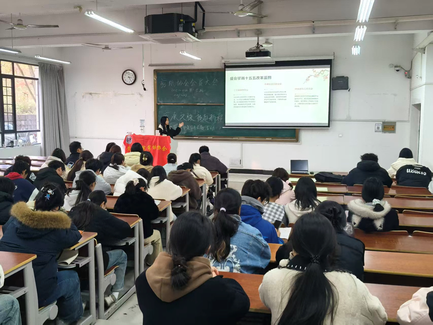 为深入学习习近平文化思想,传承中华优秀传统文化,提升团员青年对文化遗产的认同感与创造力,剪纸协会于2025年12月3日下午3点至5点,在率水校区文端楼2205教室组织开展“剪韵传薪,纸载风华”主题团日活动。